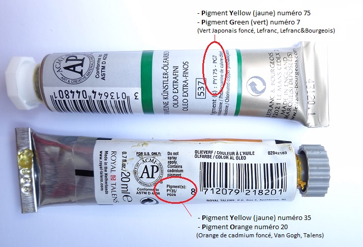 Bien qu’il n’y ait pas « d’appellation d’origine contrôlée » pour le nom des couleurs, les industriels sont obligés d’indiquer sur les tubes les pigments utilisés.